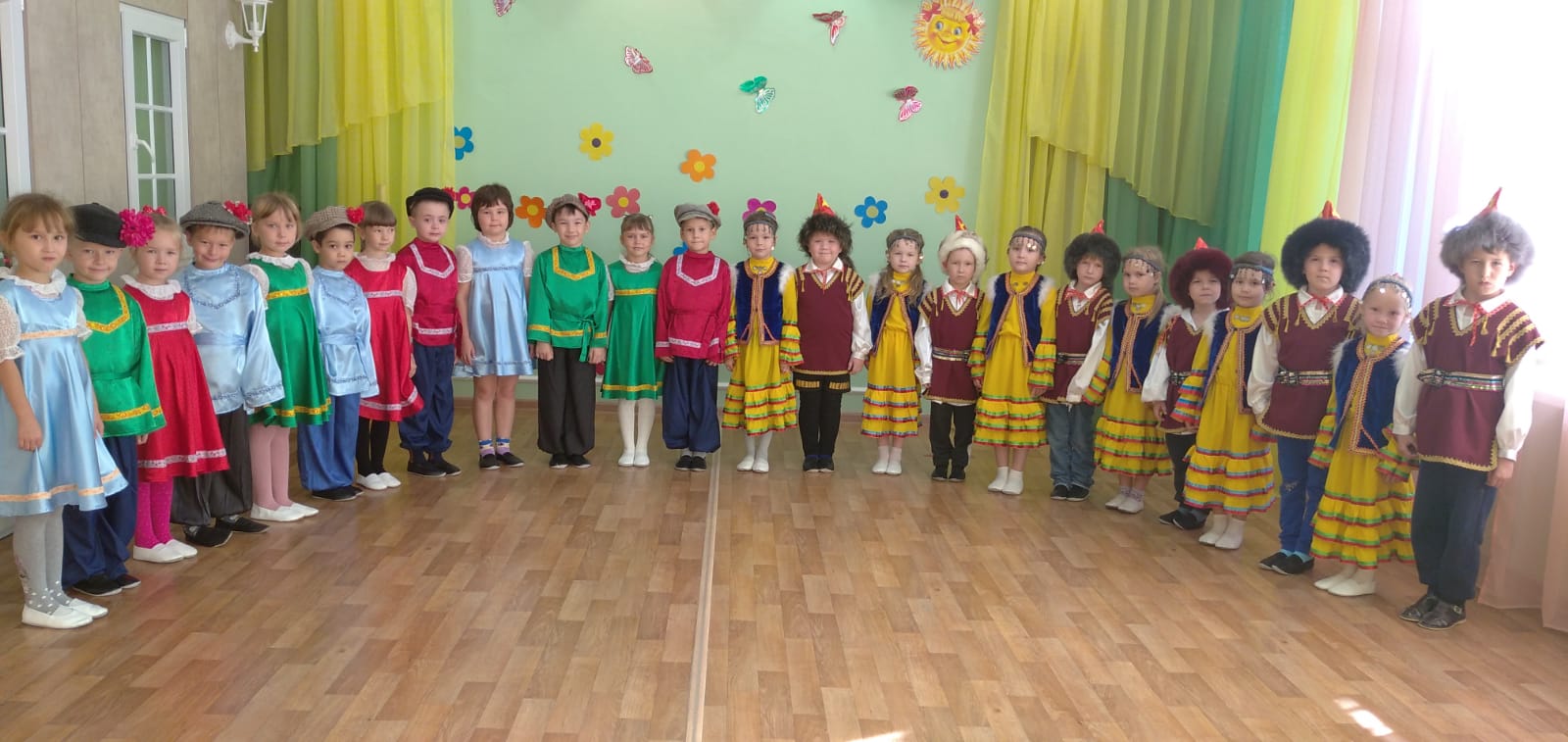 В этот день воспитанники старших и подготовительных групп, нарядились в разные костюмы; побеседовали об особенностях каждого из них; поиграли в русскую народную игру «Родничок» и в башкирскую игру «Юрта». Спели песни «Подарю стране цветы», «Ватан». В этот день ребята узнали много нового и интересного об Отчизне и о своей малой родине. Дети, нарядившись в национальные костюмы, смогли проникнуться всей душой в историю народов нашей республики.